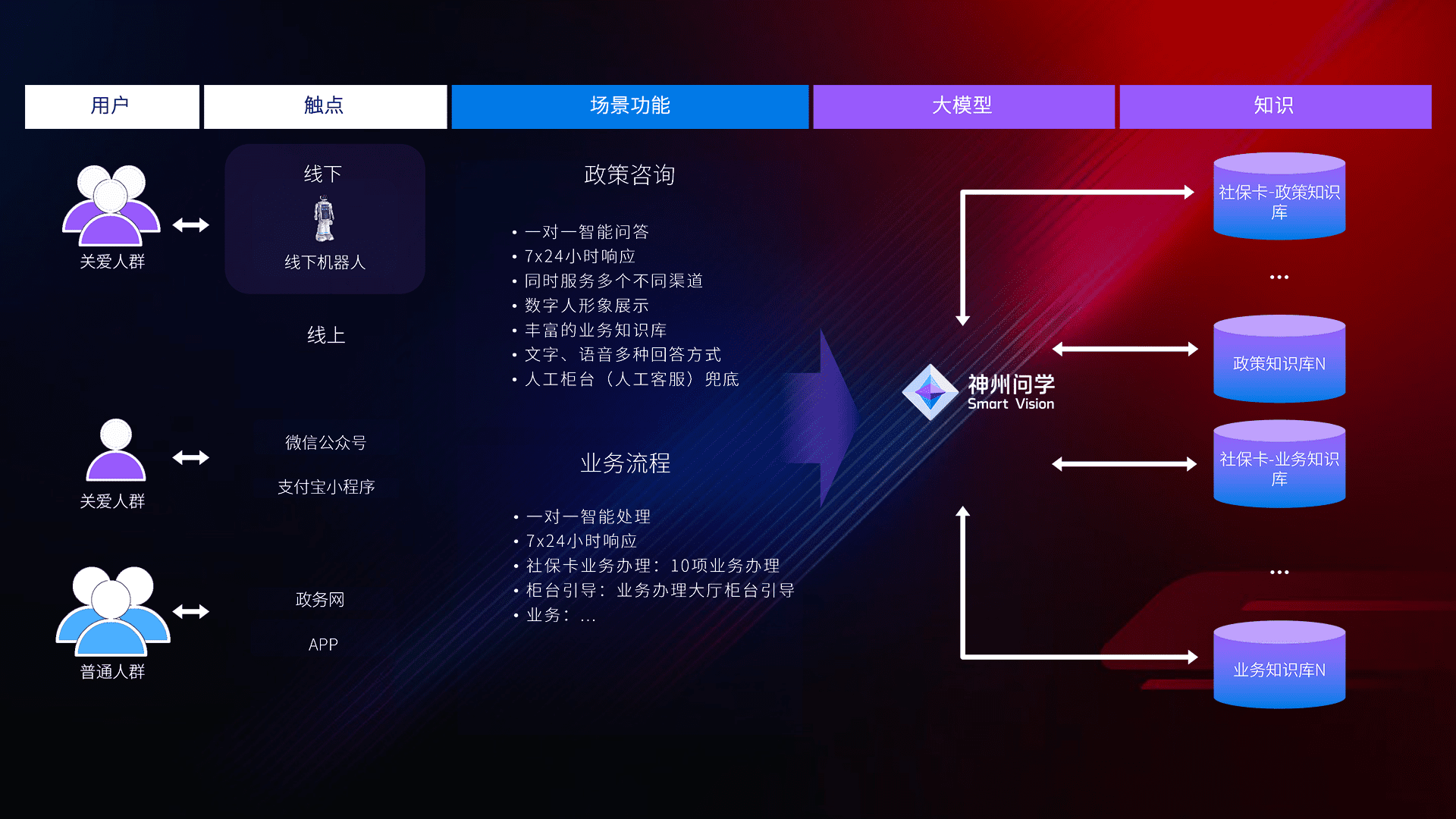 • 线上线下全覆盖:线上提供微信公众号、、、支付宝小程序、、、、政务网、、、、app多种渠道,,,与线下机器人形成完整服务体系。。。。